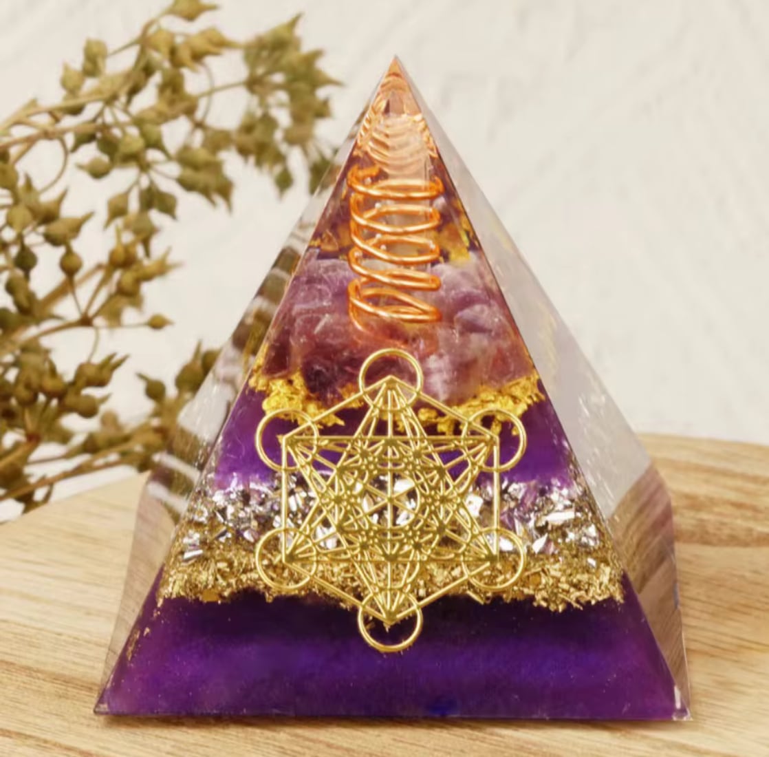 フラワーオブライフ【ピラミッドオブジェ】やさしい癒しの輝き インテリア置物 #パワーオブライフ
